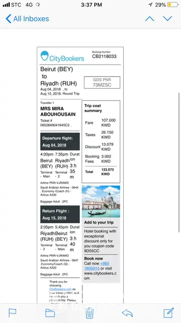 I had booked my ticket on April 23, 2019 through CityBookers with booking number CB2187586 form Kuwait to Islamabad.