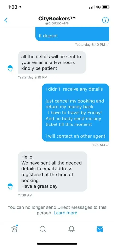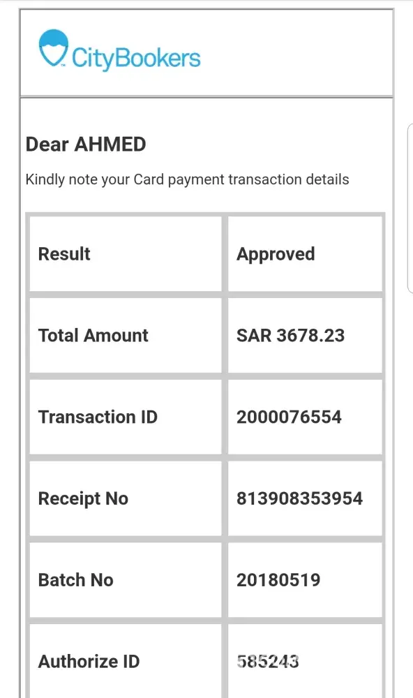 I have booked a flight through city bookers website on Saudia, paid the full amount by visa and received a confirmation from city bookers on my email about flight booking and payment however on Saudia ticket isn't paid yet. Currently I'm at risk of losing my reservation! Because of city bookers...I have also sent email to customer service with no solution.