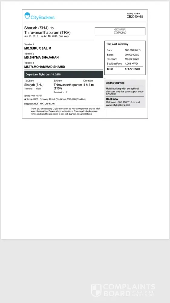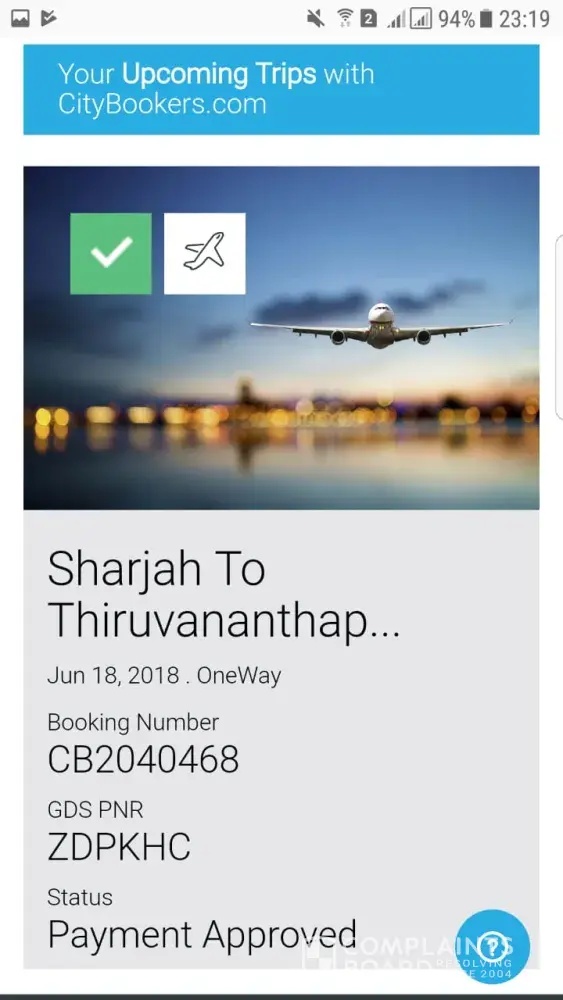 I have booked a flight through city bookers website on jan 3, 2018. Booking number