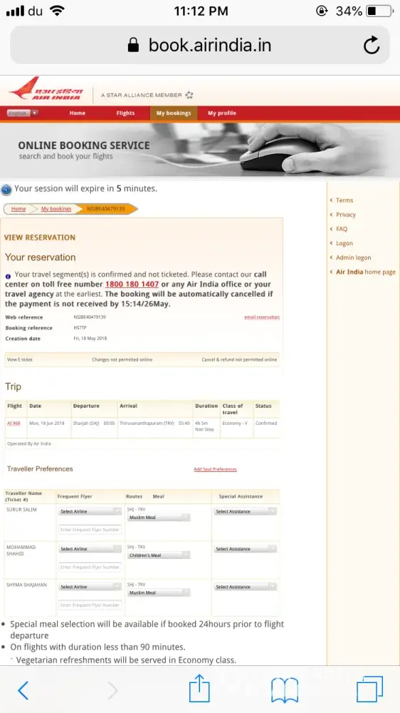 Airline PNR : HS7TP (airindia.in)