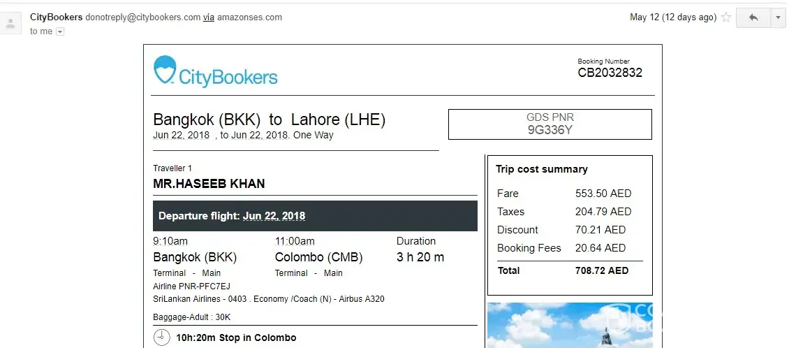 Citybooker is totally scam, i have paid them for my ticket but they didnt pay to airline when i am trying to contact them no one replying email nor someone picking up call.