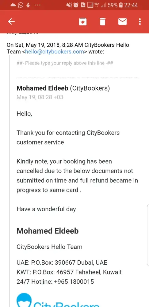 CityBookers Kuwait are unprofessional and with no Ethic.
