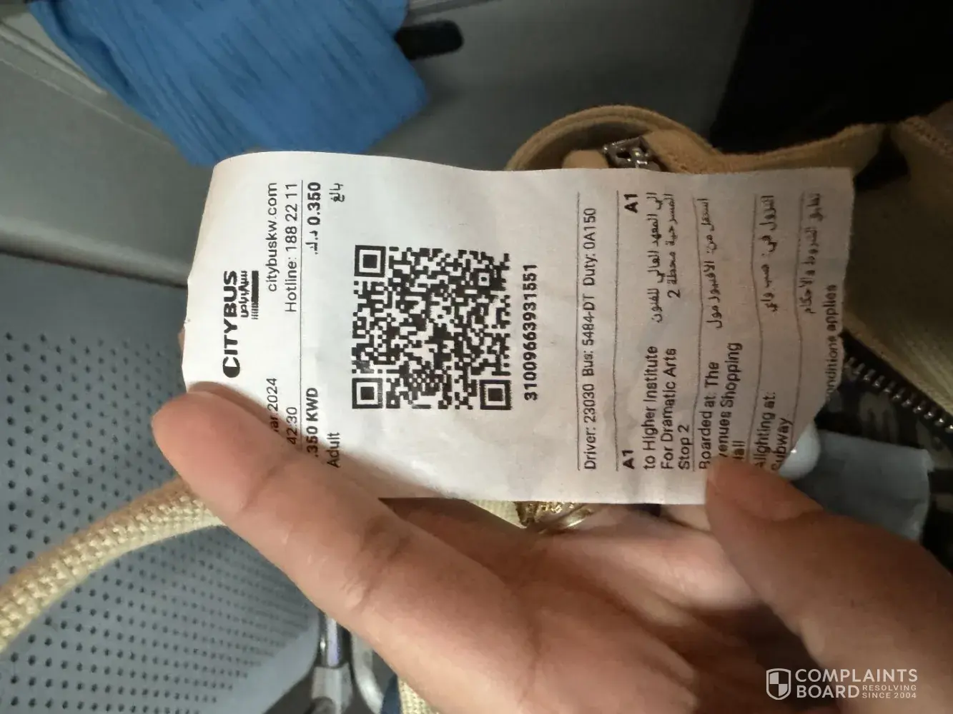 CityBus Kuwait has received 51 complaints on ComplaintsBoard. The first reported case, Bus driver bad character, was published on Nov 10, 2019, and the most recent complaint, Citybus Application QR Code Purchase, was posted on Mar 27, 2024.