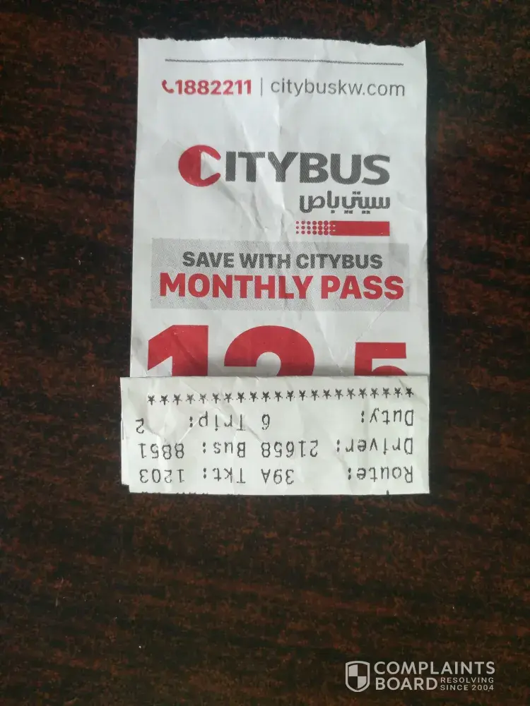 morning 9:40 agaila to mahboula i trip in the bus bus but the driver get money from me but he didnt give me the ticket