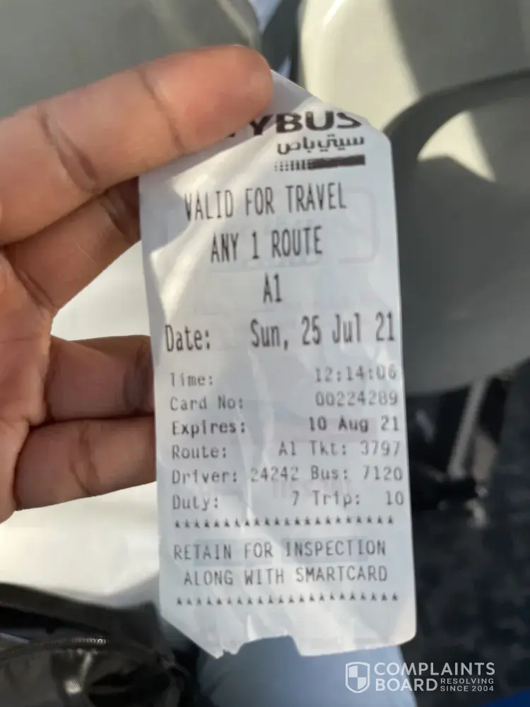 Im complaining about last sunday july 25, 2021 I ride in a1 bus when we reach in apollo salmiya he asking me if im using bus pass I said yes and he told me to go down because he is late already he need to go back in avenues I said I only using a1 passes so he go but when we reached boulevard stop light he go u turn and he didn't bring me where should I go down I told him im only delicates and he didn't listen he go u turn to go back avenues... I go down and walk should be he will drop all the passenger before he go back where he need togo. That is not good not because i'm alone already passenger in the bus so no need to drop where should be I go... Please I want some action to this complain... I post my ticket so you would know who's the driver
