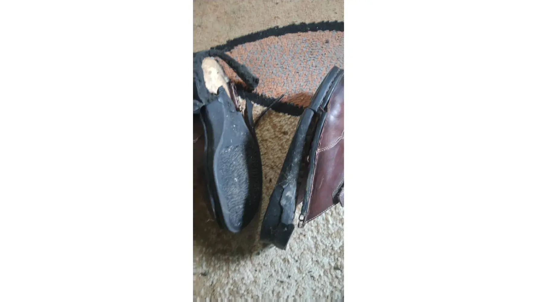 My wife and I were out having dinner with family when we noticed a bunch of black chunks of stuff on the floor under her chair at the restaurant. It turns out the soles of her shoes were disintegrating. She had to walk back to the car without her shoes because they were falling apart.