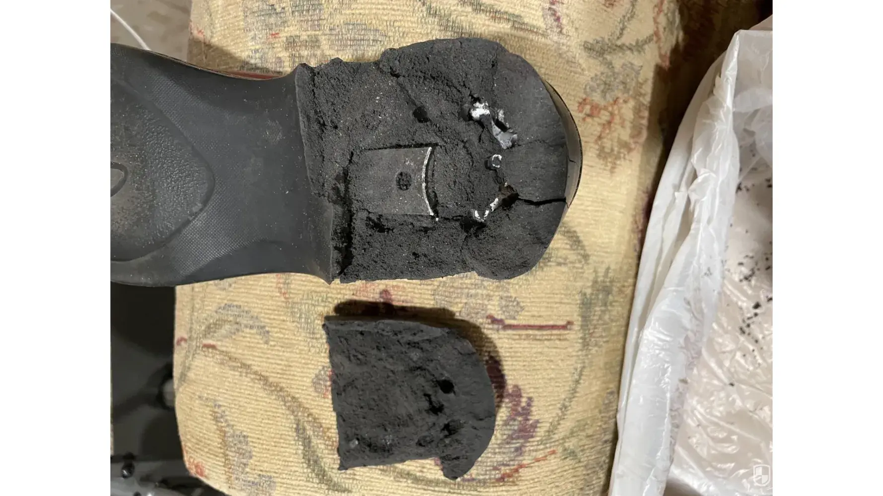 shoe heels disintegrating.