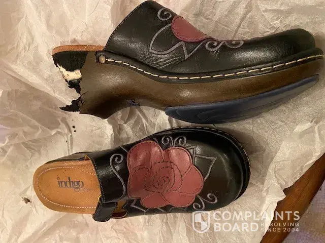 I have now had TWO pairs of Clark's Indigo clogs where the heel has just disintegrated, leaving black tar like crumbles. I would be happy to share photos. The first pair fell apart while we were on vacation and we had to find shoe store to buy her an emergency pair of new shoes w to wear. The first pair was a light blue with a large daisy design on top. The...