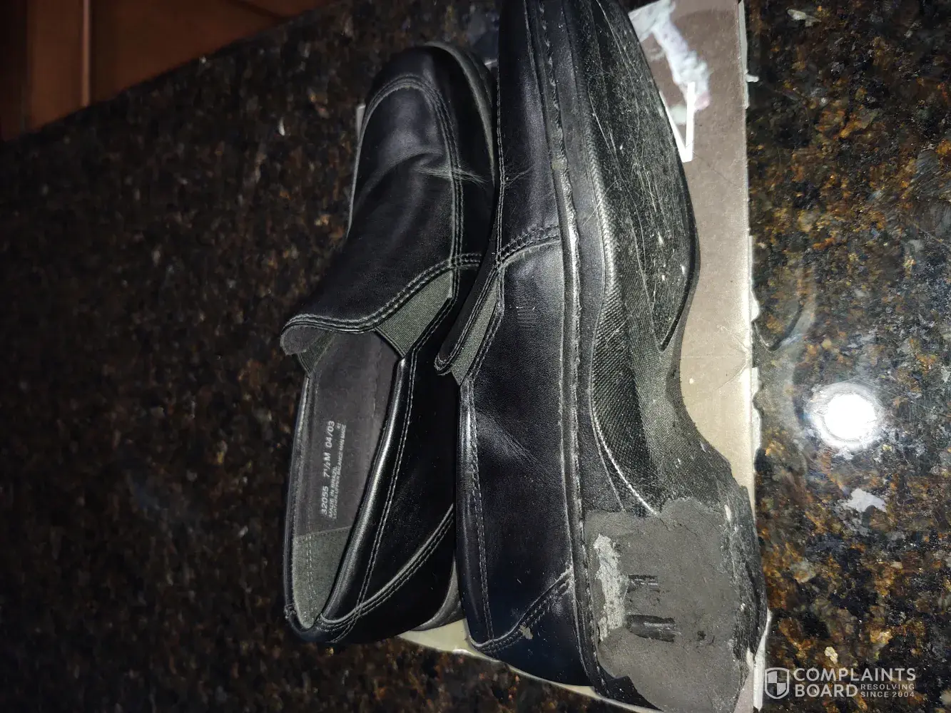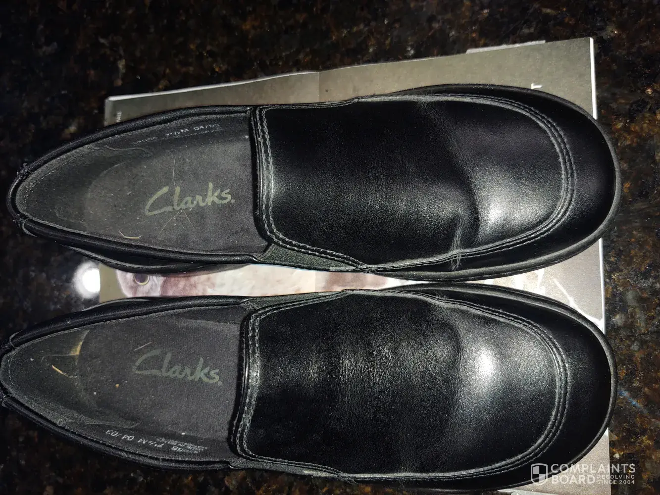 We both have purchased Clark's in the past and are happy with those purchases...but this time...see attached photos. My wife mentioned the soles of the shoes were sticky when she put them on.
