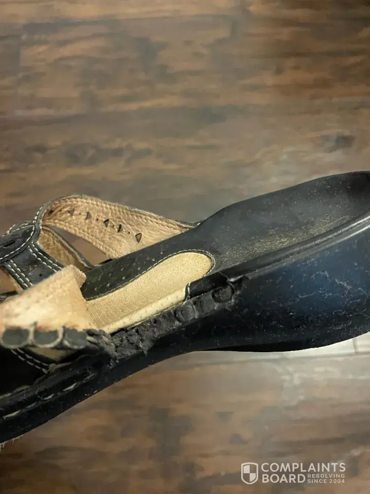 I purchased a pair black leather shoes with a thick rubber soul I only use them to go out I work in a hospital so I do not wear them at work and I want to get them out the other day open the top of the original shoebox they came in and one she was fine and the other one the soul was separate from the shoe plus it was crumbled to pieces and mini bread crumbles and it's so infuriating not to get a response from anything from from your company. You have many faithful buyers and I originally started buying from you because of my mother when my father was stationed in England. Very discouraging.
