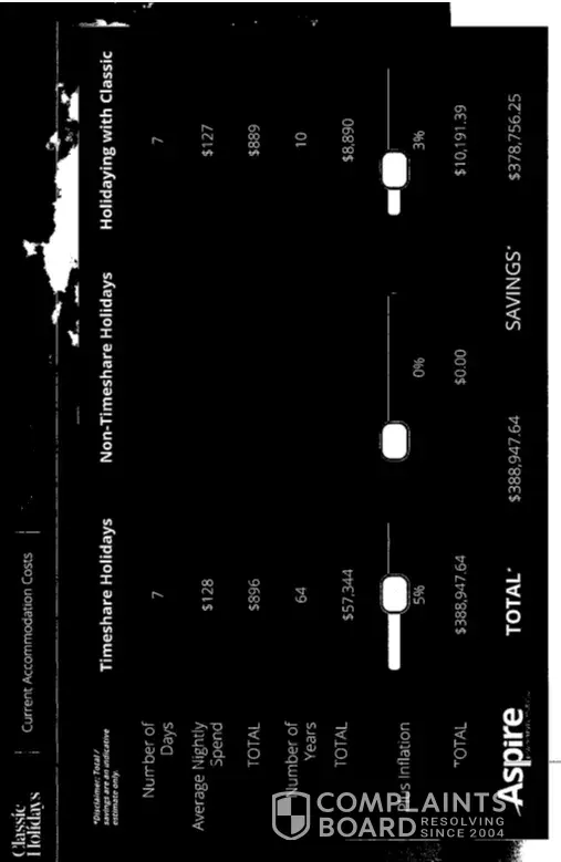 The above calculations demonstrate how the information provided in the sales presentation to the members are misleading and displayed unconscionable conduct.