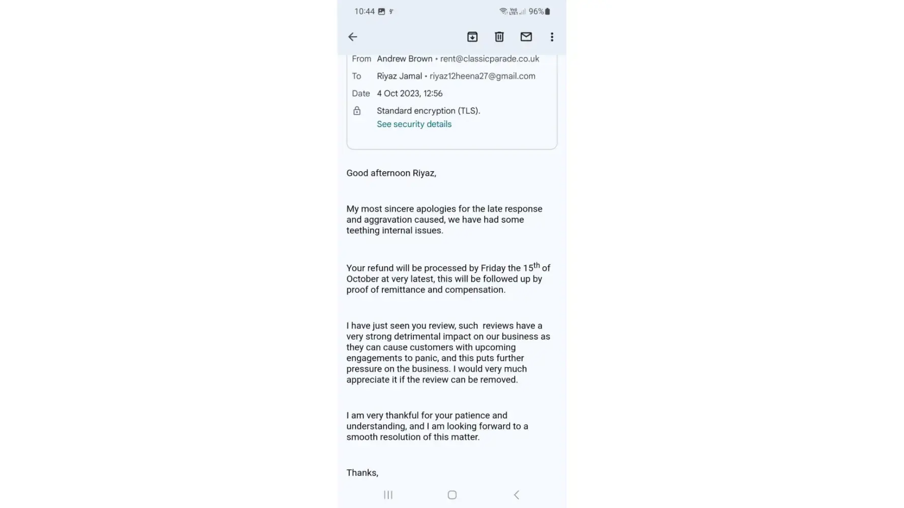 This issue has been resolved as Classic parade have been in touch and there were some communication issues but the refund I'm told will be processed this morning. I panicked after reading fake reviews on this website.