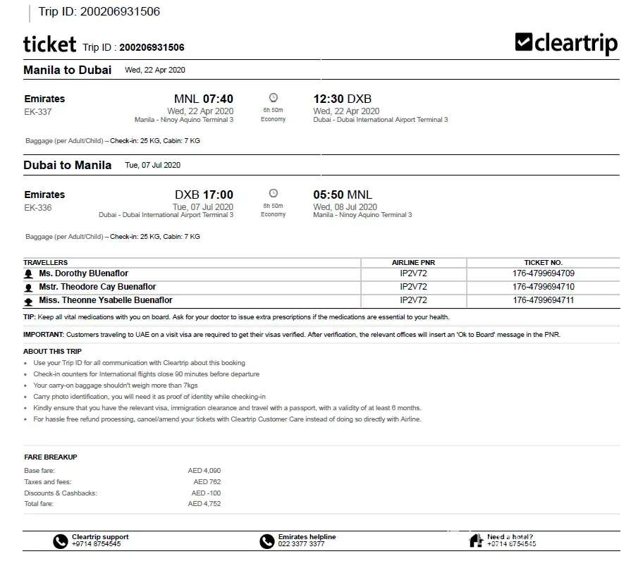 I bought a round trip ticket (Dubai-Manila-Manila Dubai) via Cleartrip. The flight was supposedly last July but I had it cancelled because of the pandemic. I've been waiting for the refund but none was credited.