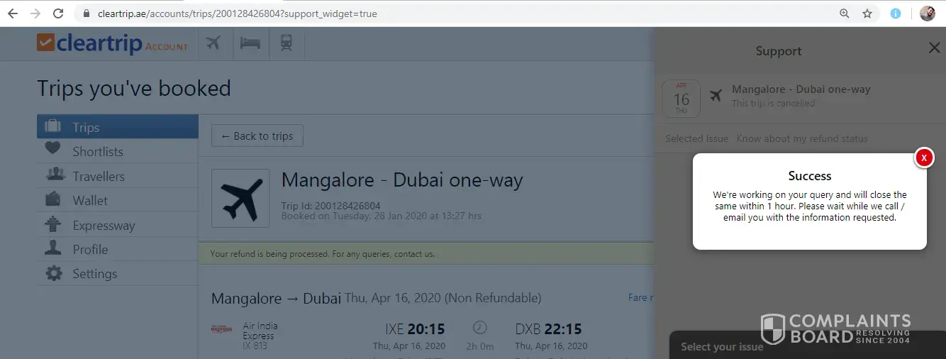 I had made an airticket booking with CLEARTRIP on 23Feb