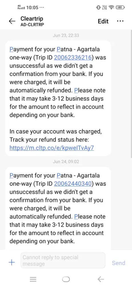 Cleartrip Non refund on cancelled ticket for inoperative flight