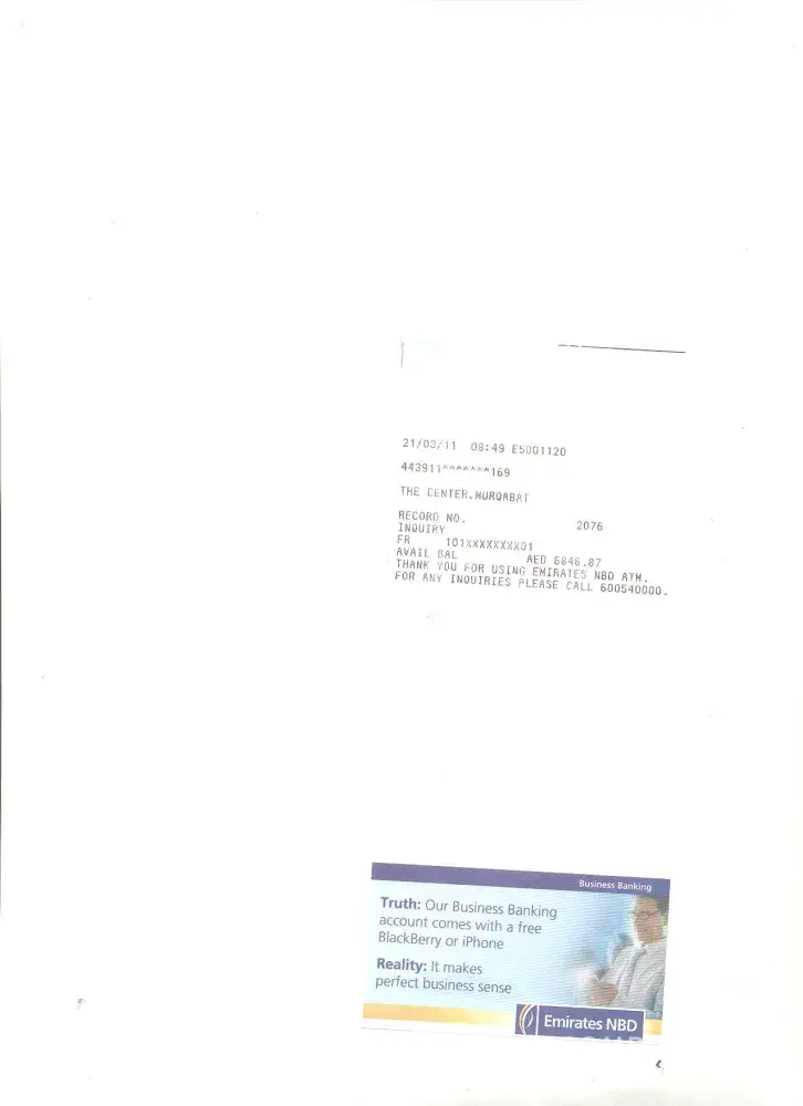 2011... We checked with bank again amount of aed 732 deducted. With out