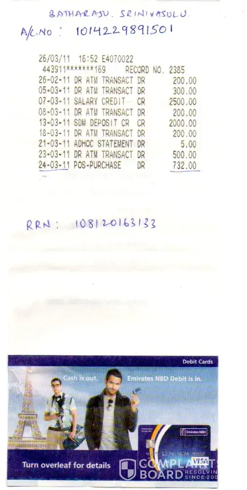 2011...we checked with bank again amount of aed 732 deducted.with out