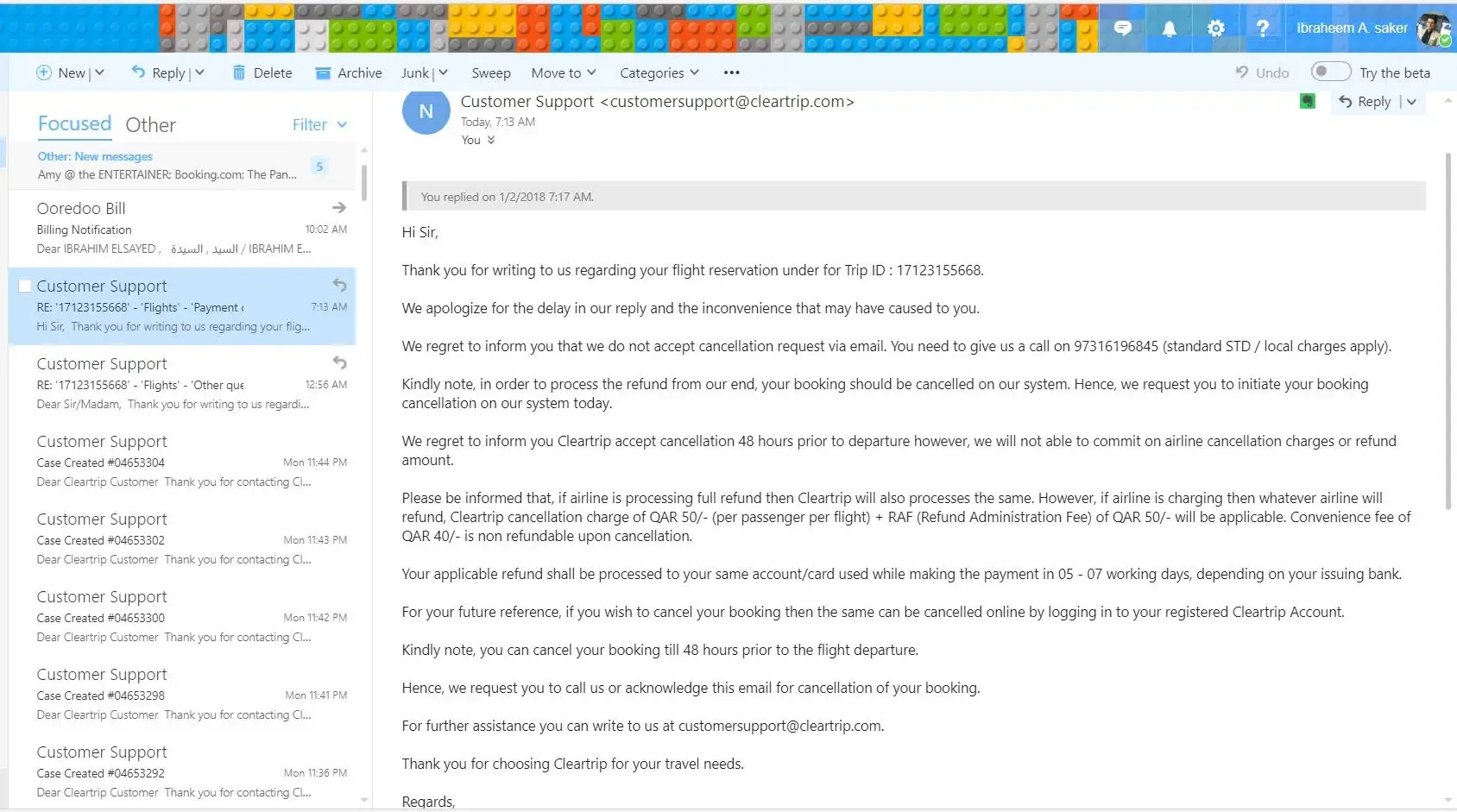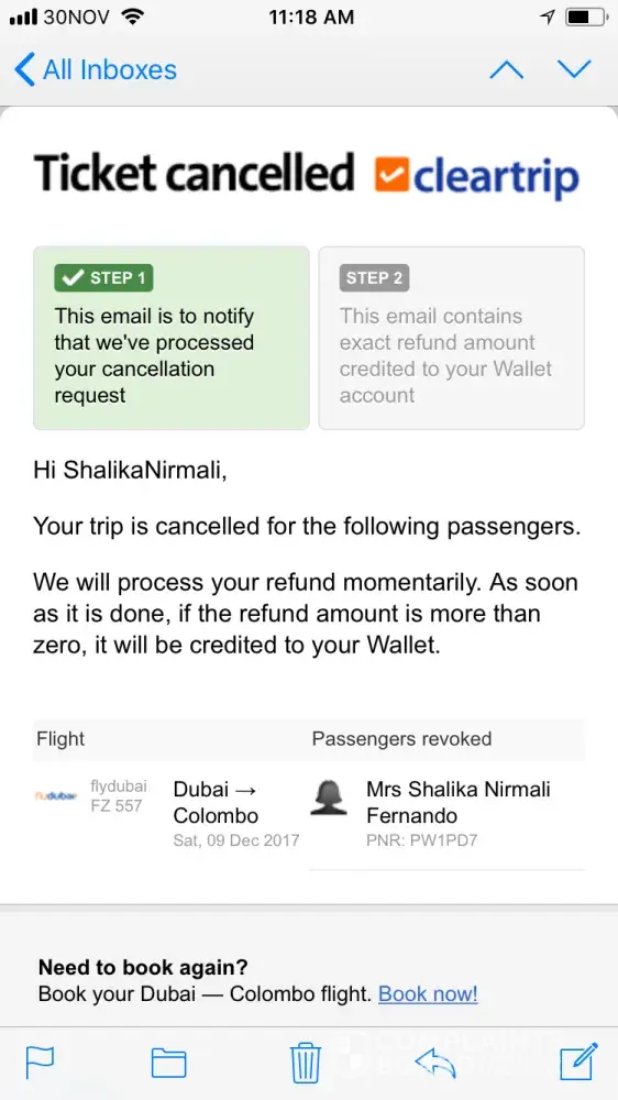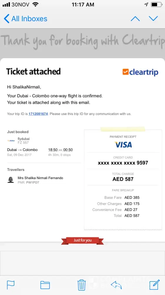 Secondly, I have written multiple emails to cleartrip customer care but have not received any response to all my emails nor any revert from their front.