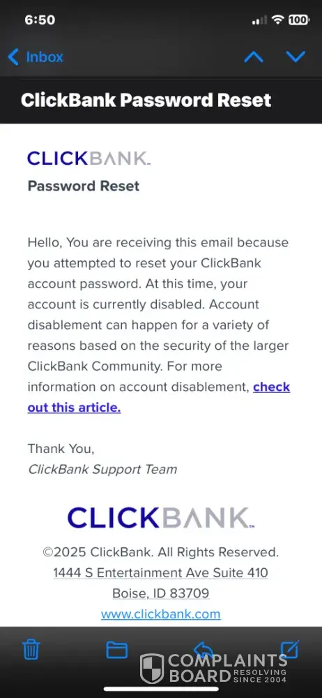 ClickBank Clickbank disabled my account