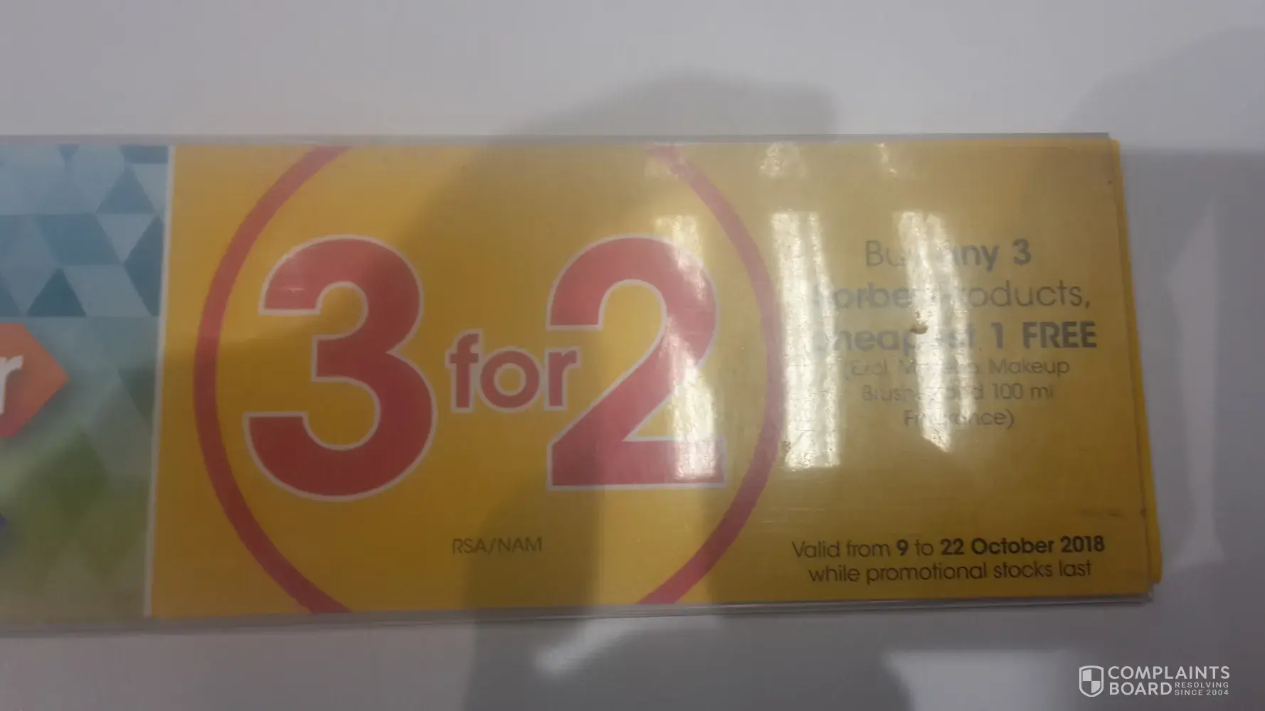 I just bought at clicks wingtip.I do not agree wit the fact that it states on the shelf, buy 3 for 2 and get cheapest free, it states excl make up, make up brushes and 100ml fragrances.I took a face wash, mask and day cream.At the till they said I dont qualify for special, it all needs to be on the same shelf? The facewash and daycream was on same shelf and mask on different shelf but there is no make up brushes on the shelf aswell.Just feel it is false advertising because it stated ALL SORBET PRODUCTS EXCL make up brushes, make up and 100ml fragrances.Very confusing.