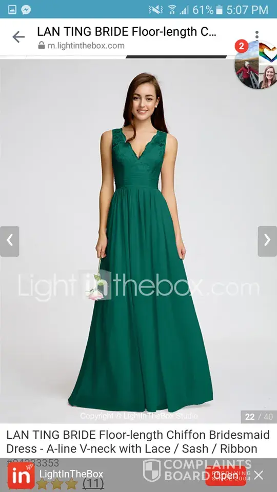The dress I custom ordered has arrived but is not the colour shown on your website. The dress I ordered was green all over. The one that has arrived today has white lace at the top. This does not match the item displayed on your website - thus does not match the listing on your website and was sold wrongly! I have attached an image of the dress recieved and an image of the dress that is listed on your website.