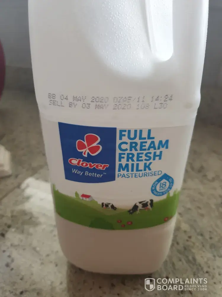 I bought a 2 x 2Ltr milks last week 7th September 2017 with an expiry date of 12 September 2017 at Checkers hyper Kenilworth - get home to make a cup of tea and the milk is sour - i smell the other 2 Ltr bottle and it was sour too, i had to toss 4 Ltrs of milk away and run back to shop to get more milk. i find this totally unacceptable as clover is a well known brand milk is not the cheapest !