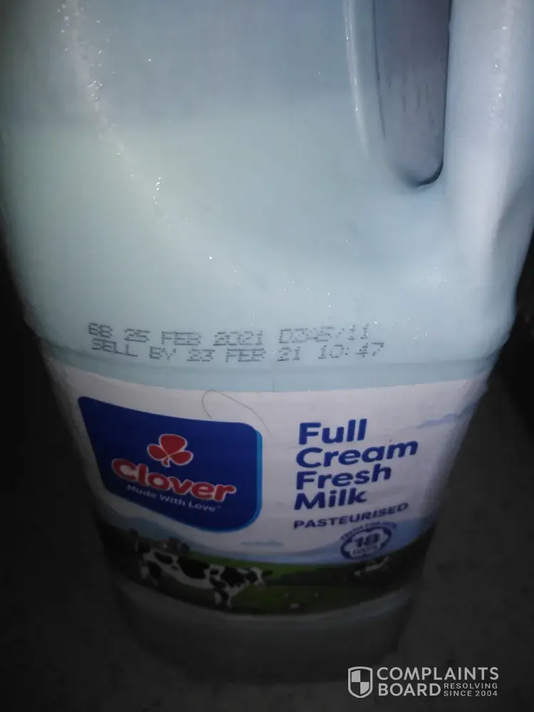 I purchased a 2lt milk from our local store on Friday the 19.02.2021, expory date the25.02.2021, and it was gone off/spoilt by the 20.02.2021.