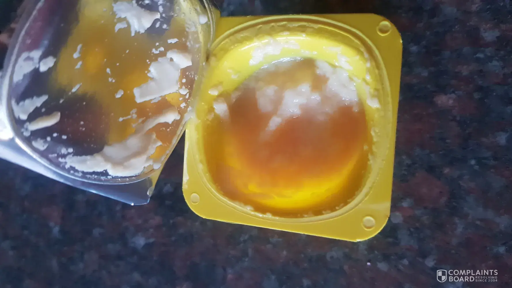 I purchased 1 box clover vanilla custard on Sunday 16.02.2020 to be used the same day with some dessert with some friends. The box was opened and used, only to find that taste was not right, and on closer examination, we noticed that the pouring spout was black from the inside. We also were then complaining after about 2 hours after consuming it of runny...