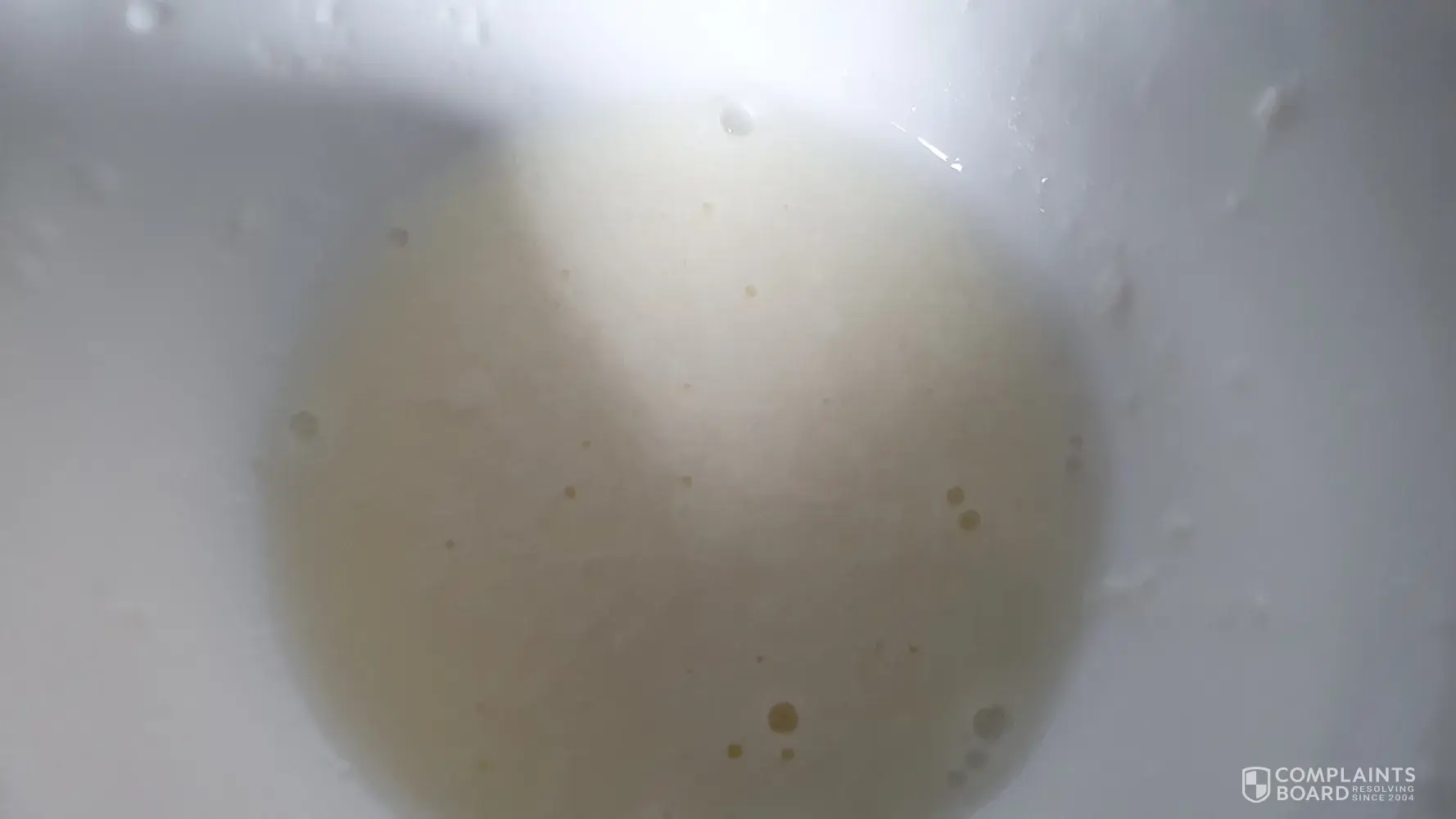 The milk had been stored in the fridge and when opened on the morning of the 23rd, it gave of a sour smell and was chunky and discolored (visible in the pictures below).