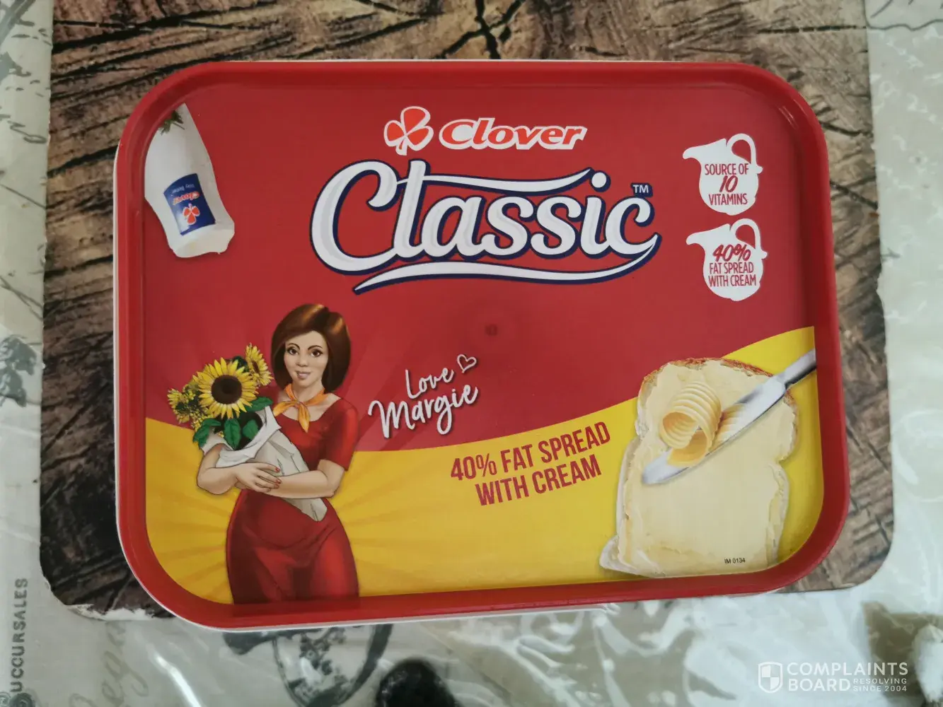 I bought 2 tubs of Clover margarine at the beginning of the year. I was very dissapointed when we used it to spread savory breads for a number of invited guests. This margarine tastes like petrol, and you actually want to get sick from the disgusting taste. Needless to say it was a total embarrassment. Pse attend to this complaint. Your urgent response would be appreciated.