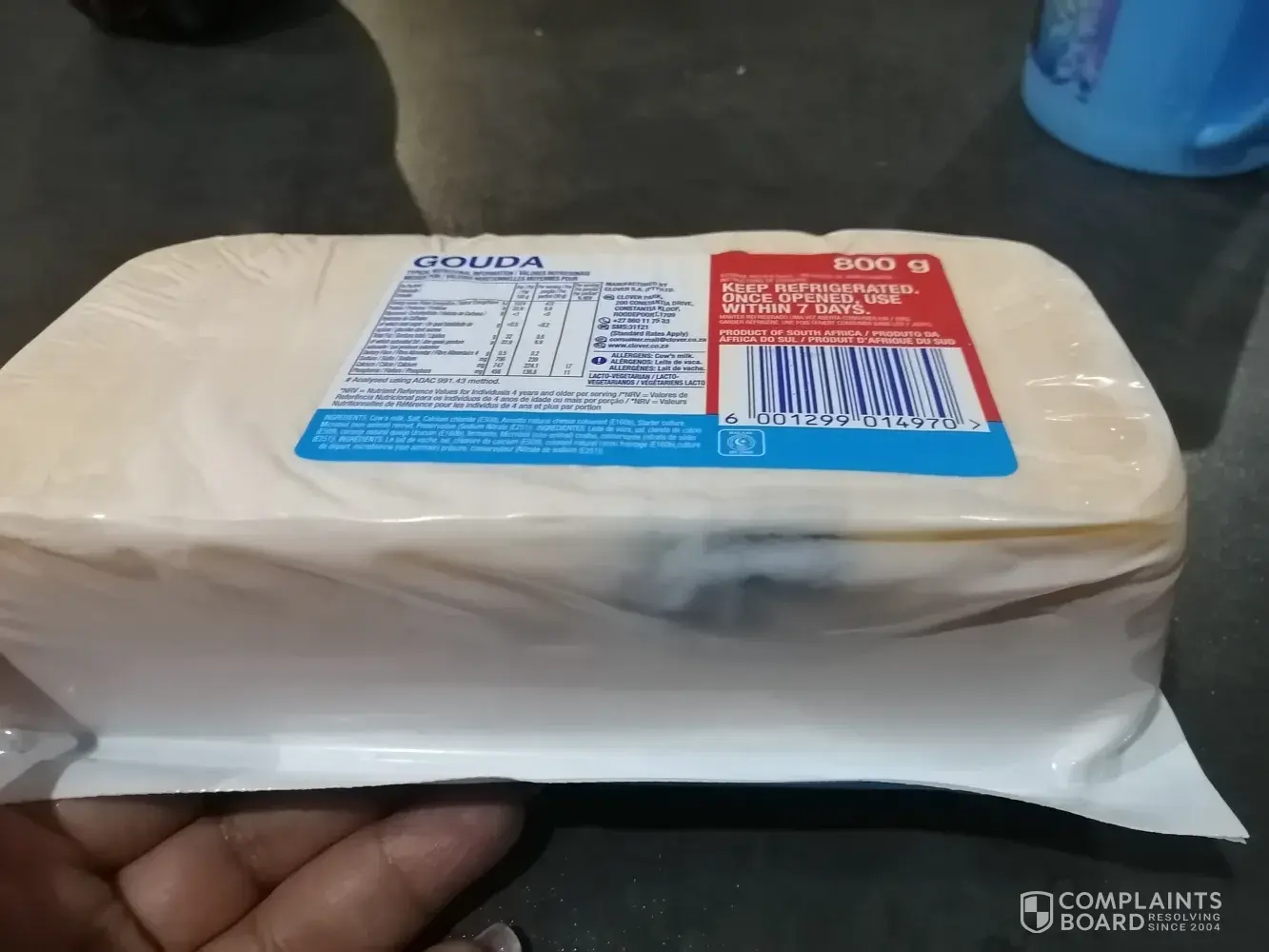 Hi. I purchased a 800g block of semi hard Gouda cheese at my local Checkers Hyper (Brackenfell, Cape Town) and upon wanting to use the cheese a few days later I noticed that the cheese was already mouldy.
