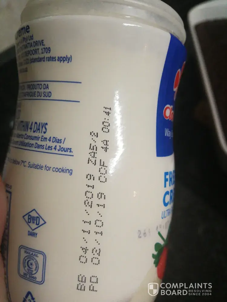 Please note that this is not the first time. Two weeks ago this also happened, but I just disposed of it. The 2lt that I also purchased spoiled before the expiry date. I had also disposed of it, but I am experiencing this way to many times and therefore had to complain.