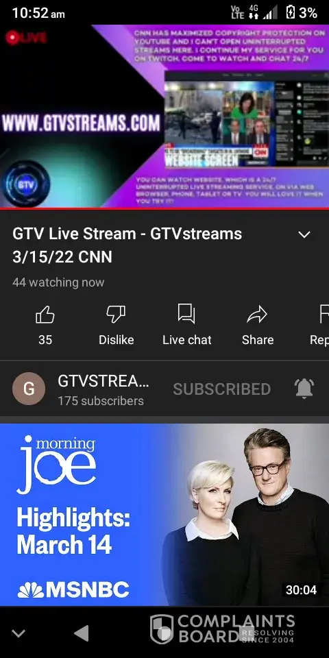 Everything YouTube acts and removes the content for breaching Warner Bros copyright another stream pops up, this content provides not only CNN live streaming but links to PayPal and Twitch as YouTube doesn't monetize this channel!
