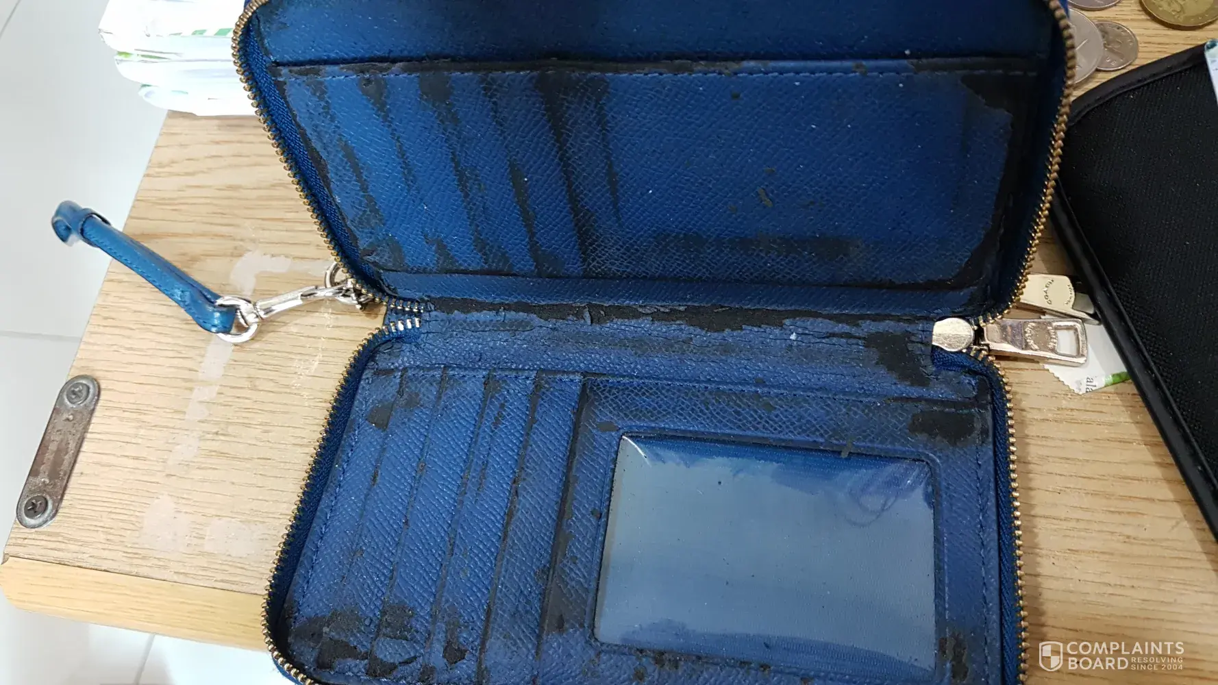 The very kind people there had me send it back at my expense and repaired the lining but did not address the purple color. When I called, I was told I could send it back again at my expense (and time, it took weeks for it to be returned). When I hesitated, the customer service rep explained dye transfer happens to COACH purses. Sad.