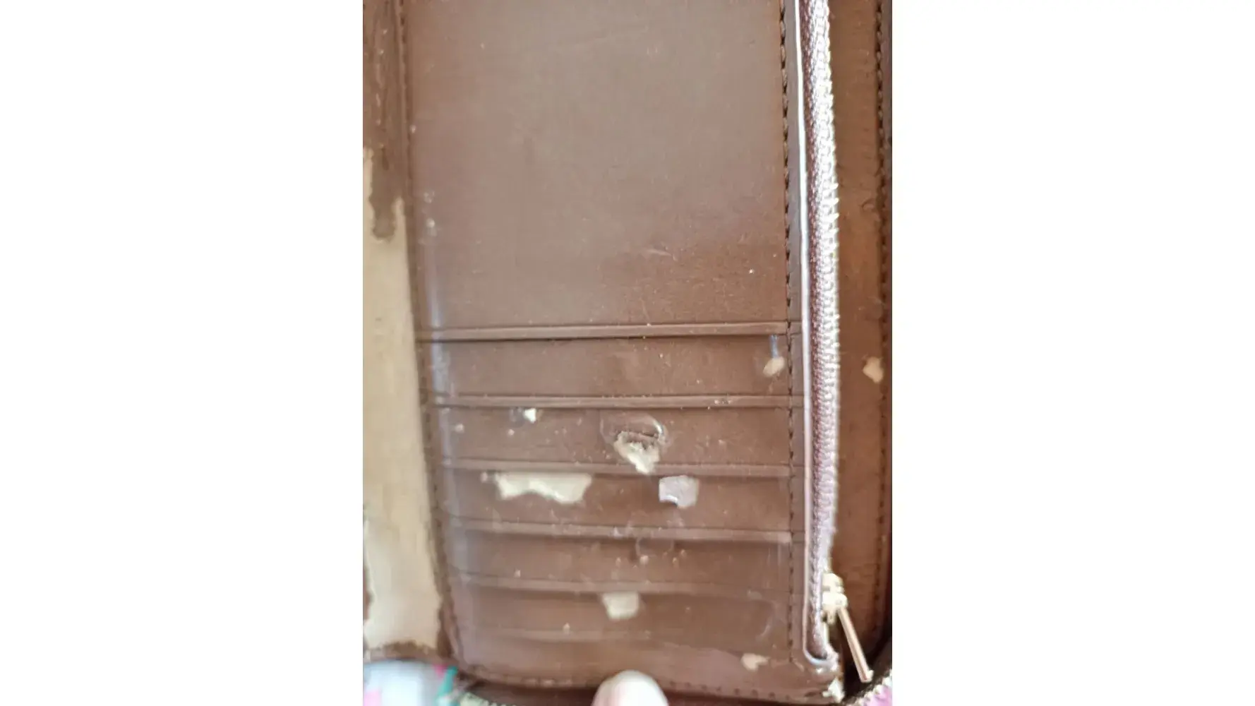 Please take a good look at the pictures. It has completely torn from inside very poor leather quality. From the outside it's ok there is no damage.