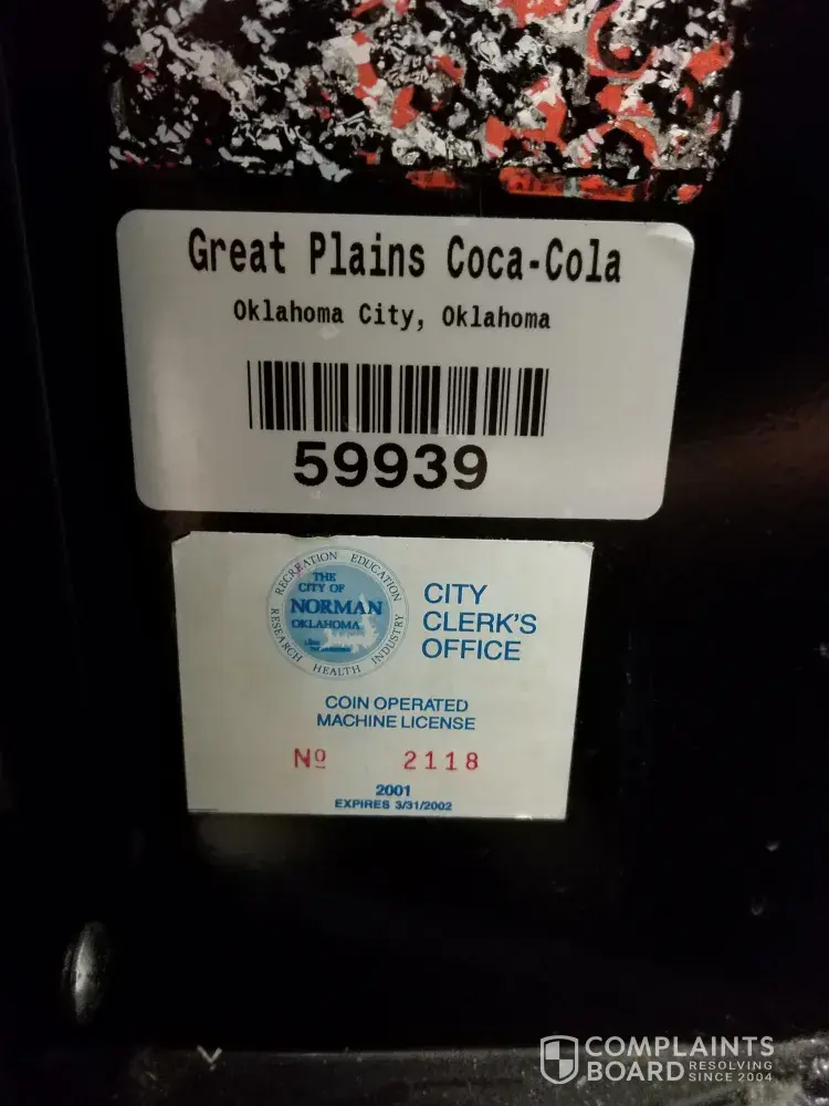 I keep getting out of date product from this Coke machine at my place of work. I have gotten bottles a month out of date and today I get one from 3months out of date! You need to rotate your stock more often at this location please. I work for the University of Oklahoma and have used their vending machines a bit but this one is constantly out of date or out of product.