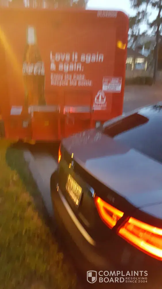 One of your drivers parked inappropriately close to my vehicle inside of my apartment complex. There were plenty of other parking options available, yet he chose to park right against my car. This is unacceptable...especially since he wasn't here in business. It is 9pm and there is no coke machine in my complex. Please train your drivers to use more common sense and to stop driving company vehicles on personal time. I have both the tag and truck number. I expect this employee to be handled appropriately.