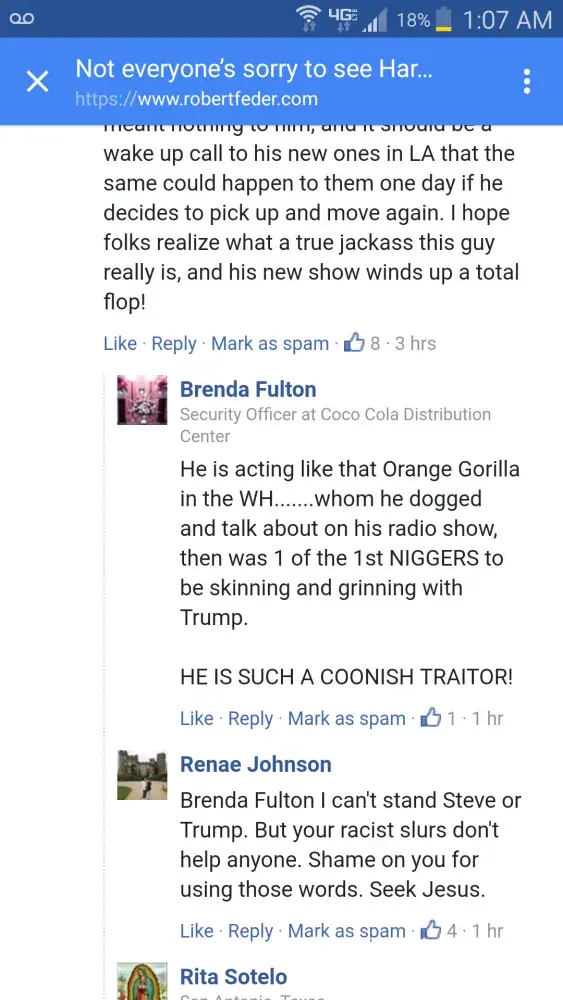 I also have a screenshot as well of this disgustingly racist tirade. It's disappointing to see this is representative of your securry personnel at one of your Coca Cola distribution centers.