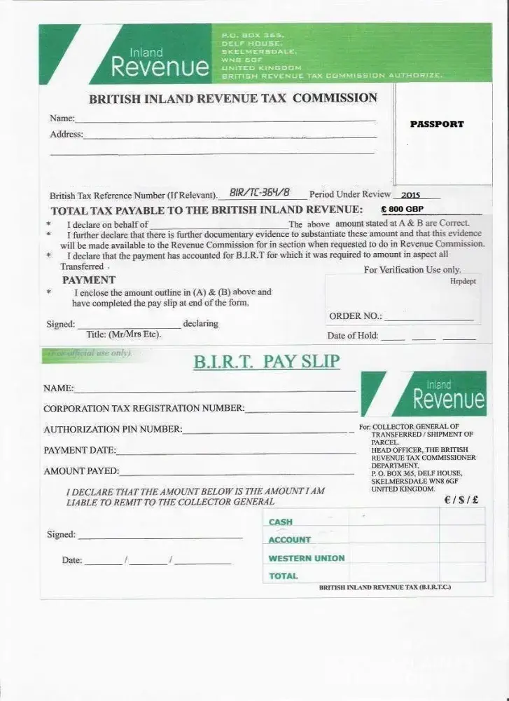 I've received the email I'm pasting for your clear info on Sept 26 2015. Estimado Ganador, Este correo electrónico confirma la recepción segura de la información y los datos proporcionados para la verificación y las reivindicaciones de sus ganancias. Tenemos el agrado de informarle que el proceso de verificación de su archivo de pago se ha concluido con éxito y ganar su cheque de novecientos cincuenta mil libras Gran Bretaña {£ 950, 000.00 } Listo para el pago a usted. Su premio es que se remitirá de inmediato a la empresa que se va a manejar la entrega de asu cheque por su destino. Usted debe proceder a su banco local con el cheque para cobrarlo una vez que lo reciba. Un agente de envÃo de nuestra empresa es ser affililiate completamente equipadas y entregar el cheque a usted y le ayudará a cobrar el cheque en cualquier banco de su localidad. Para comenzar el proceso de reclamaciones de su premio que está en contacto con la entrega compañÃa y les proporcionan la siguiente información como se indican a continuación, para que podamos proceder con la verificación y despacho proceso de su archivo. 1. NOMBRES : 2. Residencial Dirección: 3. Teléfono Numero: 4. Ocupación:: 5. Sexo: 6. edad: Estás en contacto con el equipo de entrega a la vez con una copia de este email y que son también de proporcionarles sus datos personales, es decir su nombre y apellidos, dirección y teléfono de contacto de los requisitos de envÃo su cheque. A continuación se presentan los detalles de contacto de la empresa de mensajerÃa: ENTREGA DEL EQUIPO: SERVICIO DE CORREO ELITE DIRECCIÓN: TNT UK Ltd 5 Bashley Road Park Royal London NW10 6SD UNITED KINGDOM. NAMES:MR GEORGE R. FORMBY(DISPATCH OFFICER) EMAIL: [protected]@tnctr.com EMAIL: tnt.[protected]@outlook.com Usted está para mantenernos completamente informados sobre todos los acontecimientos. Atentamente, Online Co-ordinator Show original message TNT GLOBAL COURIER SERVICES asked me to pay for receiving my COCA COLA CLAIM INTERNET LOTTERY PRIZE and during time waiting for the BRITISH INLAND REVENUE COMMISSION sent this email I'm pasting for you. ATTN: Edith Santillan Castillo, IN RECEIPT OF YOUR EMAIL, WE MUST MAKE IT KNOWN TO YOU THE REASON WHY WE PUT A HOLD IS THAT THE BENEFICIARY ( EDITH SANTILLÀN CASTILLO ) IS NOT A BRITISH NATIONAL AND AS LAW OF BRITAIN (ACT 156 DECREE 217/2001) AND TRANSFER ACT OF 2002 WHICH REGULATES FUNDS TRANSFER STIPULATES THAT ANY SUCH FUNDS TO BE TRANSFERRED OUTSIDE BRITAIN, THE BENEFICIARY IS COMPELLED AND UNDER OBLIGATORY LAW OF BRITAIN TO PAY A TOTAL TAX FEE OF £ 800 GBP OF THE TOTAL FUNDS OF NINE HUNDRED AND FIFTY THOUSAND POUNDS STERLING FUNDS THAT IS GOING TO BE TRANSFERRED (DELIVER) OUTSIDE BRITISH. However, the Inland Revenue and the Uk Tax Investigation Service are Authorized and Regulated by the Financial Services Authority. The Taxation and Revenue Department assesses certain type €™s taxes. A tax is levied on lotteries, raffles, etc. almost everywhere, normally by the payment authority on behalf of the Government. In some cases, we receive a share of lottery taxes levied by the Government. However, in most cases, the tax takes the form of a permit fee. It is only classified as a tax in a few Governments/Countries. Non Residential tax fee is the sole responsibility of the beneficiary. Income taxes deducted from source generally include direct federal tax, communal taxes, as well as, most of the time, church tax. As in the case of income tax, cantonal tax rates vary to a fairly large extent depending on the Locality. Governmental tax scales for withholding tax and the corresponding regulations are available at the Government Tax Departments. Your funds £950, 000.00GBP (NINE Hundred And Fifty Thousand Great Britain pounds ) with other valuable documents is now on Hold because we (Tax Investigation Services) noticed that you are a Uk citizen, so in this case you will have to pay a non residential tax fee before this cheque will be allowed to be Transfer or delivered to you by THE COURIER SERVICE. You have to pay the non-residential tax fee of £ 800GBP of your winning to our account department and provide us a copy of your payment receipt, before we can release the HOLD on your Delivery. This will ensure that your funds are not taxed again by any Tax Authorities, and you will not pay any additional taxes to the IRS again when your Delivery finally arrive to your location. This cheque can only be sent to you if only you have clearance from the INLAND REVENUE, and the only way you can be cleared is when you fill the form and pay for the non residential tax charge. THE STOP ORDER NOTIFICATION TAKES EFFECT IMMEDIATELY AS THIS IS TO FACILITATE THE SETTLEMENT OF COST ON COMPREHENSIVE INSURANCE POLICY TRANSFER WITHIN BRITAIN AND TAX TO THE REVENUE DEPARTMENT. HOWEVER AN AUTHORIZATION PIN NUMBER WILL BE ISSUED TO THE COURIER COMPANY TO EFFECT THE DELIVERY OF YOUR FUND UPON FULFILLMENT OF THIS OBLIGATION. You will not pay any additional taxes to the IRS again when your Delivery finally arrive your country. THE ABOVE WAS THE MESSAGE THE DELEGATES BROUGHT BACK FROM THE MEETING HELD, AND AS SUCH YOUR ARE TO COMPLY WITH THE INSTRUCTION AND THIS WILL ENABLE US RELEASE AND AUTHORIZED THE COURIER COMPANY TO DELIVER YOUR PARCEL TO YOU IN 24 HOURS. THIS OFFICE WILL SUPPLY YOU WITH PAYMENT INSTRUCTIONS WHERE YOU ARE TO EFFECT THE REQUIRED TAX FEE AS SOON AS POSSIBLE SO THAT THE COURIER COMPANY WILL CONTINUE WITH THE DELIVERY OF YOUR PARCEL (FUNDS) TO YOU AFTER THE TAX PAYMENT. PLEASE NOTE THAT ALL DOCUMENTS WILL BE MAILED TO YOU AFTER WE RESOLVE THIS PROBLEM. THERE IS AN ATTACHED DOCUMENT FROM THE BRITISH INLAND REVENUE WHICH YOU HAVE TO FILL SIGN AND SEND BACK TO US VIA EMAIL ALONG WITH YOUR REPLY OF PAYMENT SO THAT WE CAN CONTINUE WITH THE DELIVERY OF YOUR WINNINGS. PAYMENT INSTRUCTION We were informed, and provided by the courier company your delivery payment receipt, due to the fact that you made the deliver