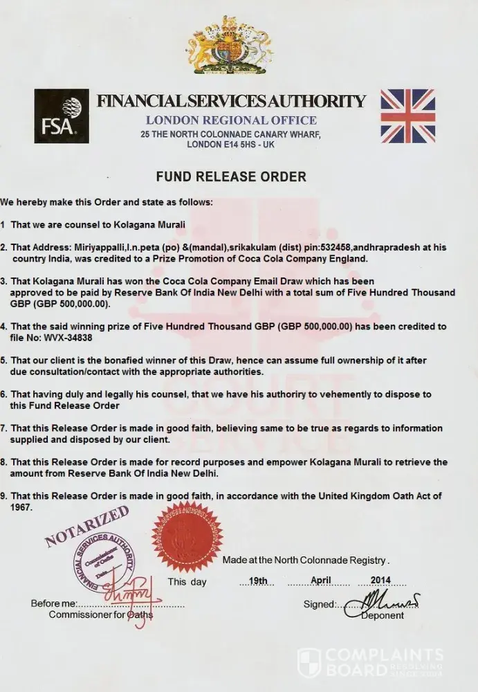 good day... i also received that i won 2, 000, 000 USD in coca cola in south africa... is there is somethinf like in UK that i can ask if this is tru or not?