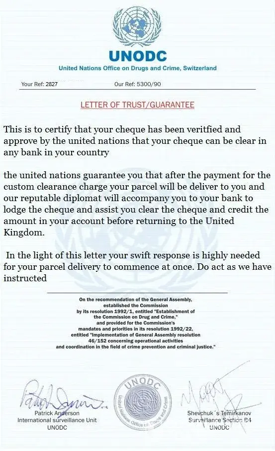 you received to the United Kingdom Investigation Bureau