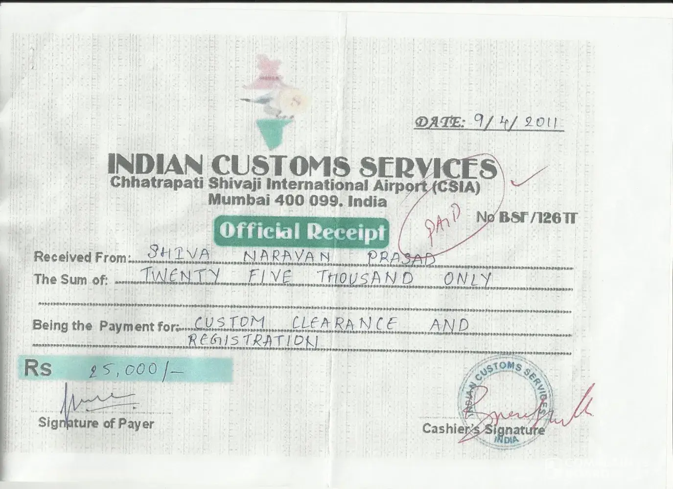 (1) rs 25, 000 for customs registration and clearance certificate (2) rs 1, 30, 000 foranti drug and money laundering clearance (3) rs 5, 80, 000 for currancy conversion in rbi (4) rs 1, 30, 000 extra due to delay in clearance.