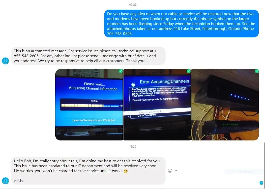 I asked them to elevate my situation to management which I was told on several occasions was done. Not once was I ever contacted by a Cogeco representative.