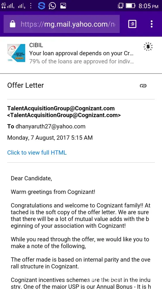 You have obviously been scammed by some random person with a fake email. I work for CTS and there's no one called Dhanya Ruth. Morever Cognizant email always have the senders name followed by (Cognizant) in brackets to ensure authenticity.