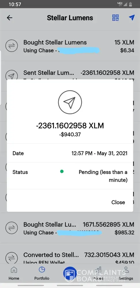 XLM coin transfer is missing over $1,000