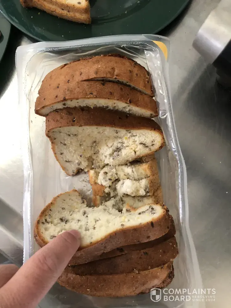 Hi there I am writing to complain about the Coles brand gluten free bread soy and linseed bread I opened the bread to toast it and it started falling apart as seen in photos that have been attached, this is disgusting and can't be toasted when falling apart what can be done about this please sick of complaining in store as nothing gets done thanks.