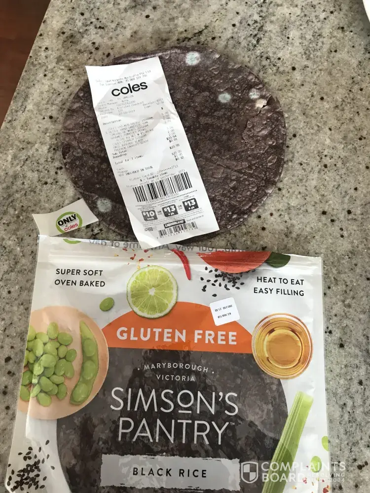 I brought the Simsons wraps and other products from coles to make myself lunch when I was shocked to see the mould on the wrap sheets.
