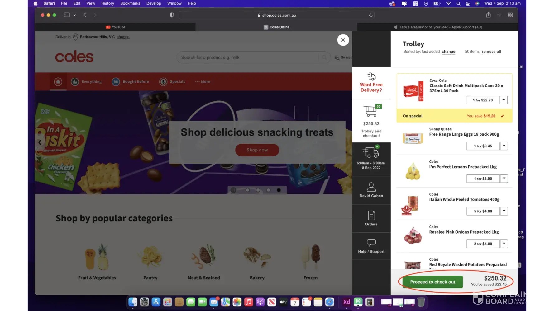 Ordered dinner and some snacks via Coles Online for my elderly mum who lives in Adelaide. I live in Perth. She was isolating with covid and it was her birthday.