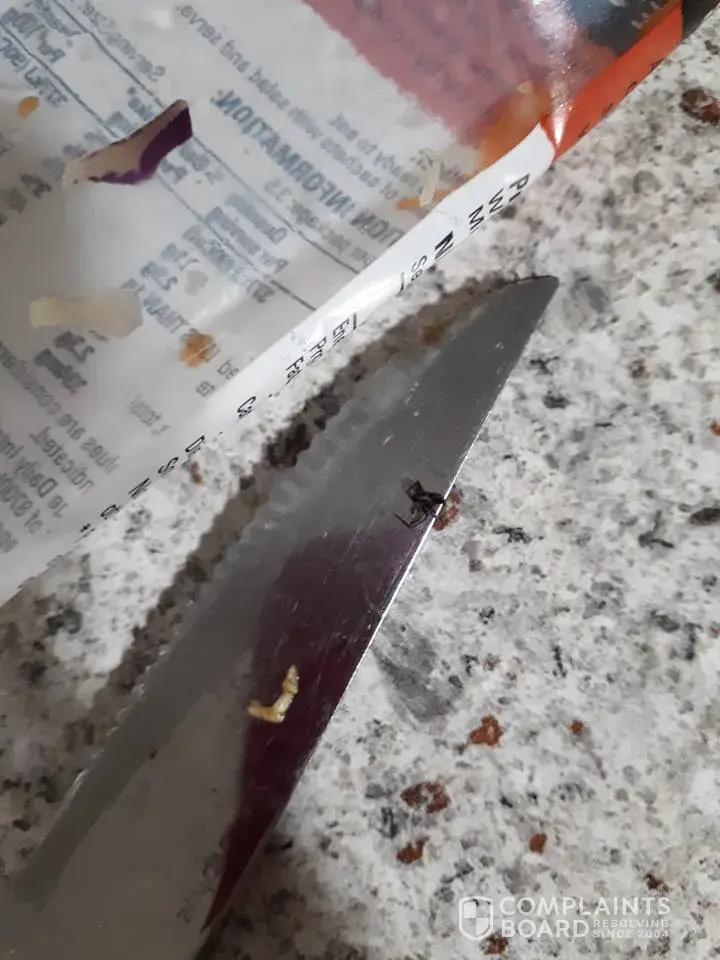 Below I have attached the packaging of the contaminated product as well as the contaminant (spider)