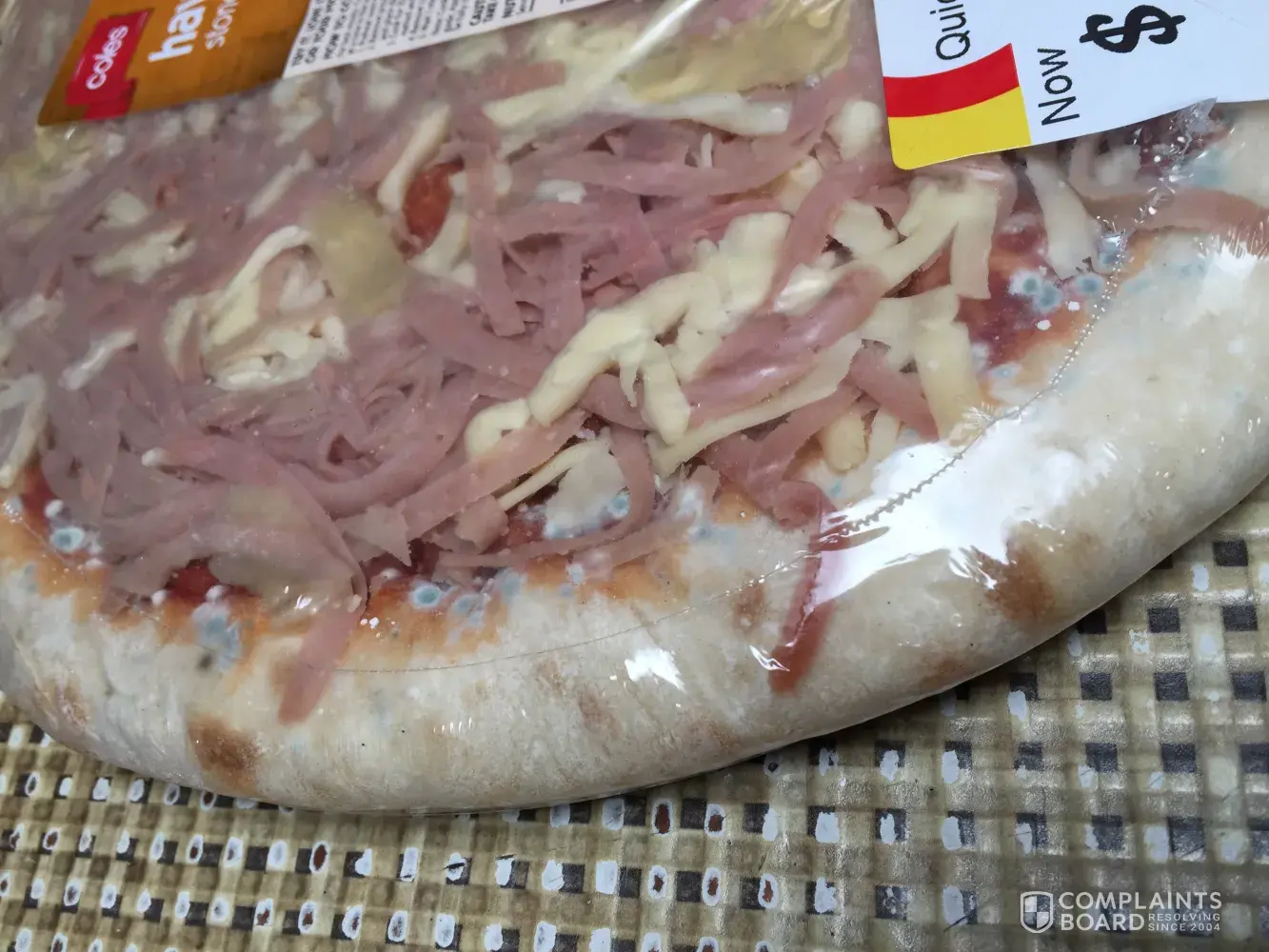 To my horror after grabbing it from the fridge, both of the pizzas were mouldy around the corners. I had a closer look and discovered it was the tomato sauce that was used on the base of the pizza had gone mouldy. I have photos if you need them. I'm very very upset!